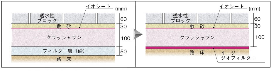 ●分離効果(施工時の平坦性を保ち、いつまでも路面が安定する)