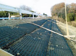 ・高強力・低伸度特性により土を拘束し、安全な盛土を築造することができる