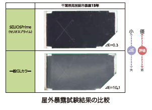 同社独自開発の「プライム塗膜(つや消し)」により、従来品よりも経年変化による色褪せを抑制。特許権取得済みの技術であり、塗膜変退色最長15年保証が可能。
