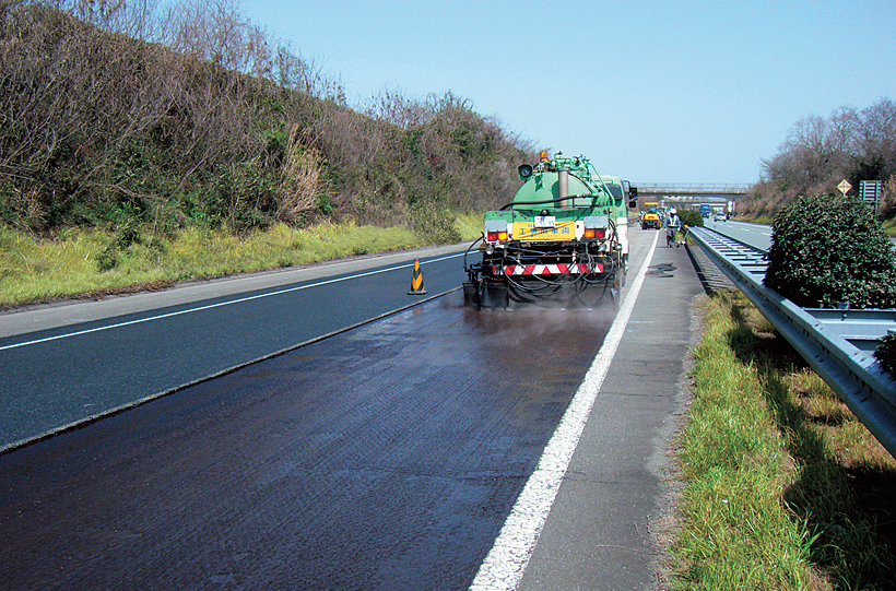 ・既設舗装と表層の間に層(遮水層)を形成し、遮水効果を発揮