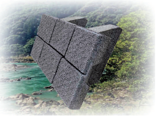 大型(2個/㎡)積みブロックの全層ポーラスタイプのため、小型ポーラスブロック同様に河川の災害復旧工事で使用が可能。