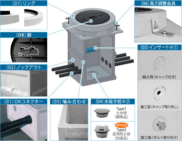 独自技術により、軽量化・高品質・高機能を実現したハンドホール。施工やメンテナンスの合理化に貢献。
