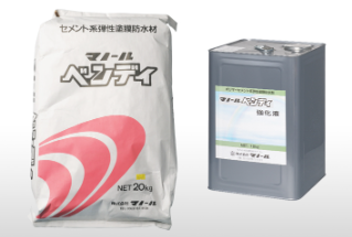 無機質のセメント系プレミックス粉体と、弾性アクリル系ポリマーディスバージョンの組台わせにより、水硬性で弾性を有した塗膜を形成。この弾性塗膜は、コンクリート・建造物の塗膜防水材として使用される。