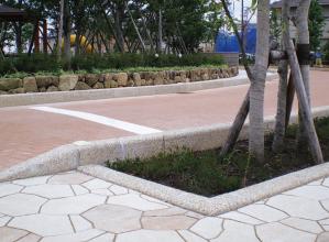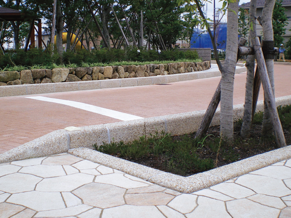 歩道と車道、緑地やステップなどの境界線をはっきりと作るだけでなく、地先タイプ、歩車道タイプ共に美しい景観も作り出す。